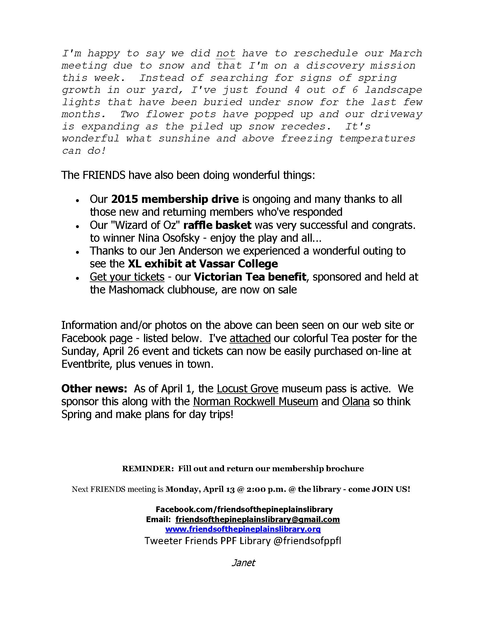 March 2015 Newsletter Mar14 Share this: Click to share on Facebook (Opens in new window) Facebook Click to email a link to a friend (Opens in new window) Email Click to print (Opens in new window) Print More Click to share on X (Opens in new window) X Like Loading... Related