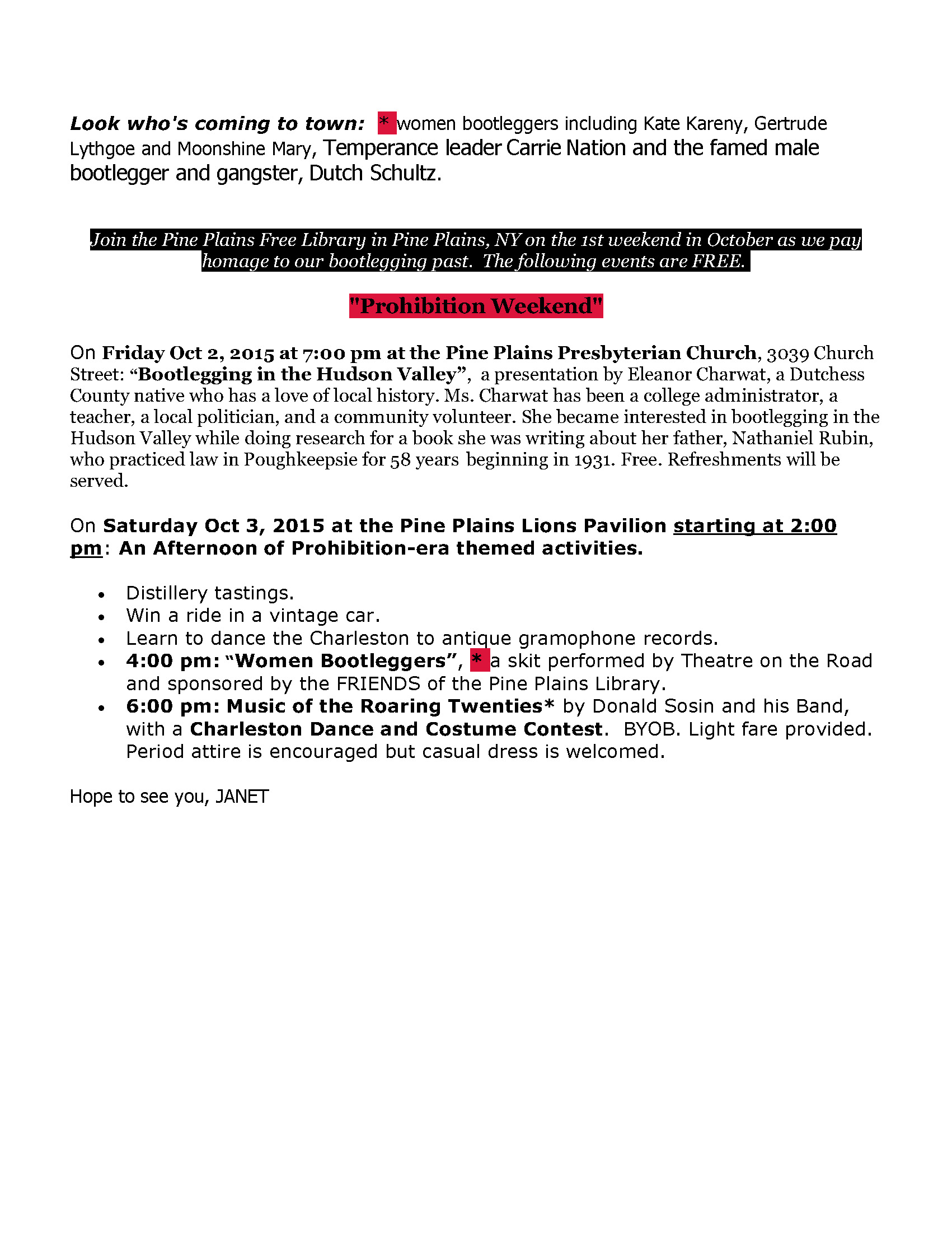 Prohibition Weekend Reminder Sep26 Share this: Click to share on Facebook (Opens in new window) Facebook Click to email a link to a friend (Opens in new window) Email Click to print (Opens in new window) Print More Click to share on X (Opens in new window) X Like Loading... Related