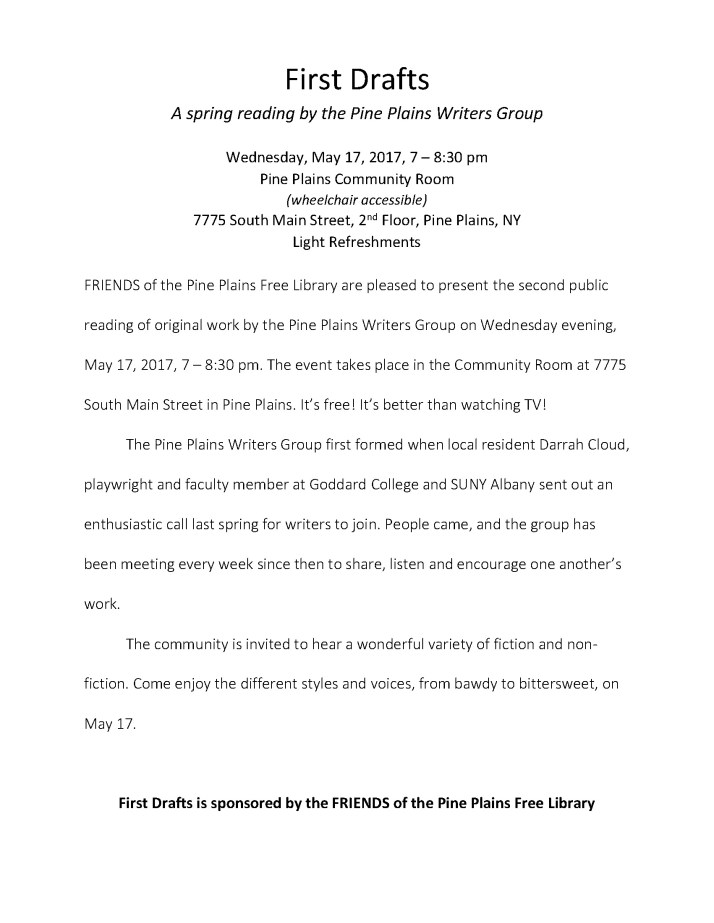 Adult Writing Group – Spring Reading Apr13 Share this: Click to share on Facebook (Opens in new window) Facebook Click to email a link to a friend (Opens in new window) Email Click to print (Opens in new window) Print More Click to share on X (Opens in new window) X Like Loading... Related