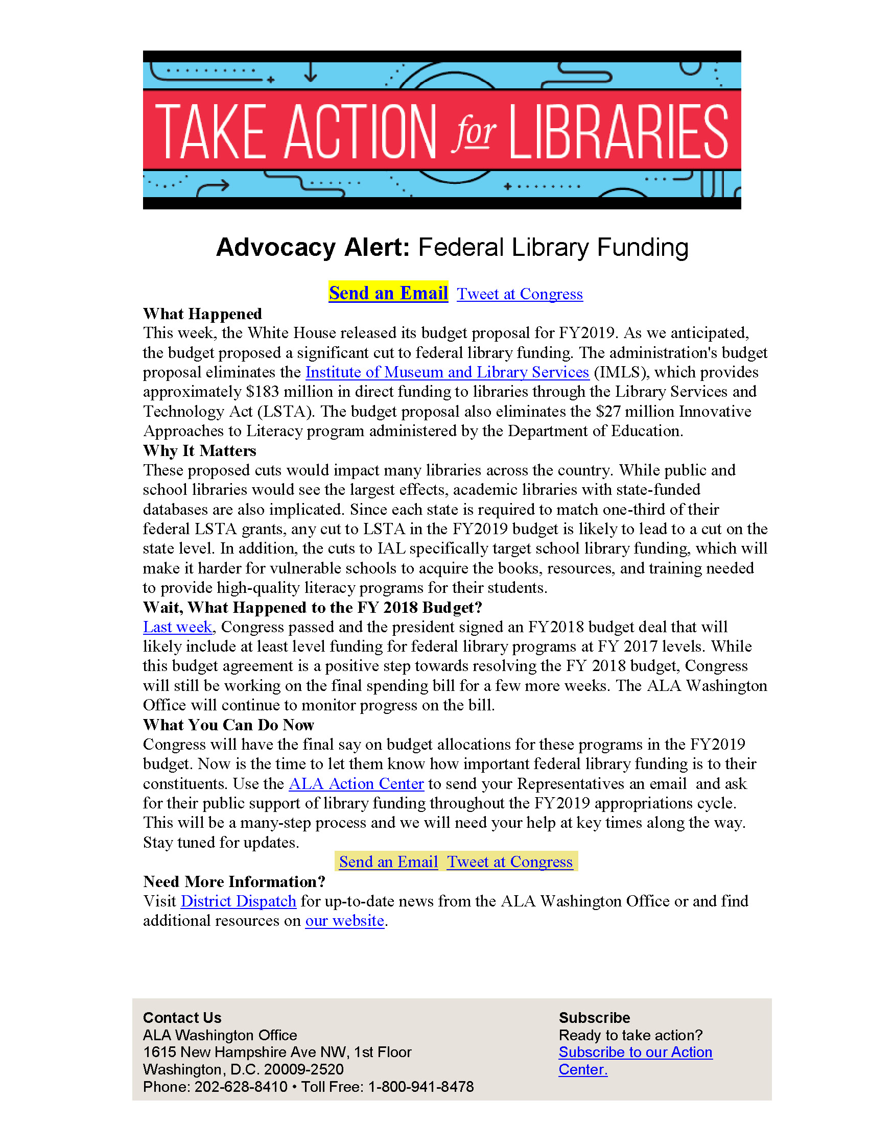 ALA Advocacy Feb13 Share this: Click to share on Facebook (Opens in new window) Facebook Click to email a link to a friend (Opens in new window) Email Click to print (Opens in new window) Print More Click to share on X (Opens in new window) X Like Loading... Related