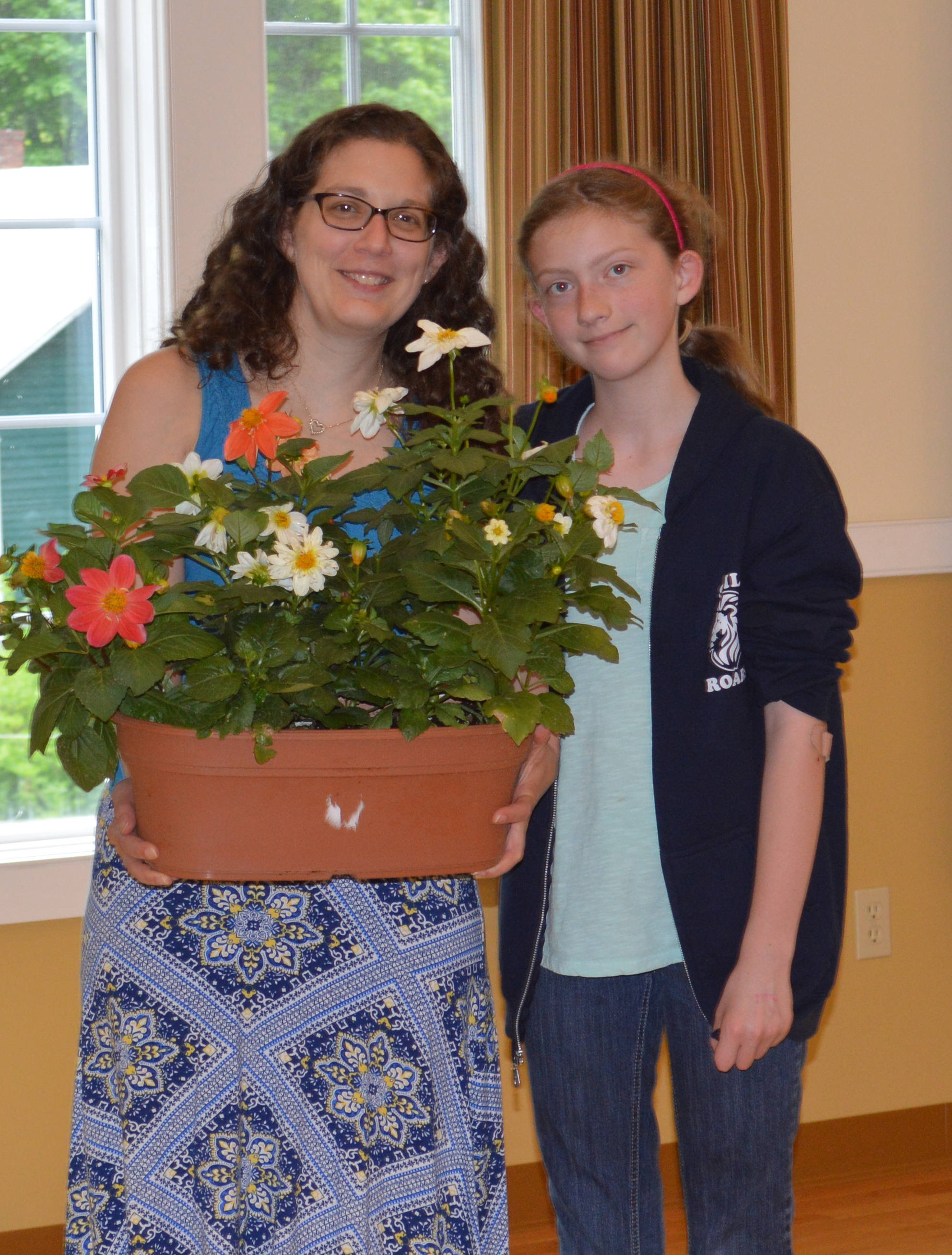 Teacher Janine Babcock and daughter Ren won the dahlia floral arrangement