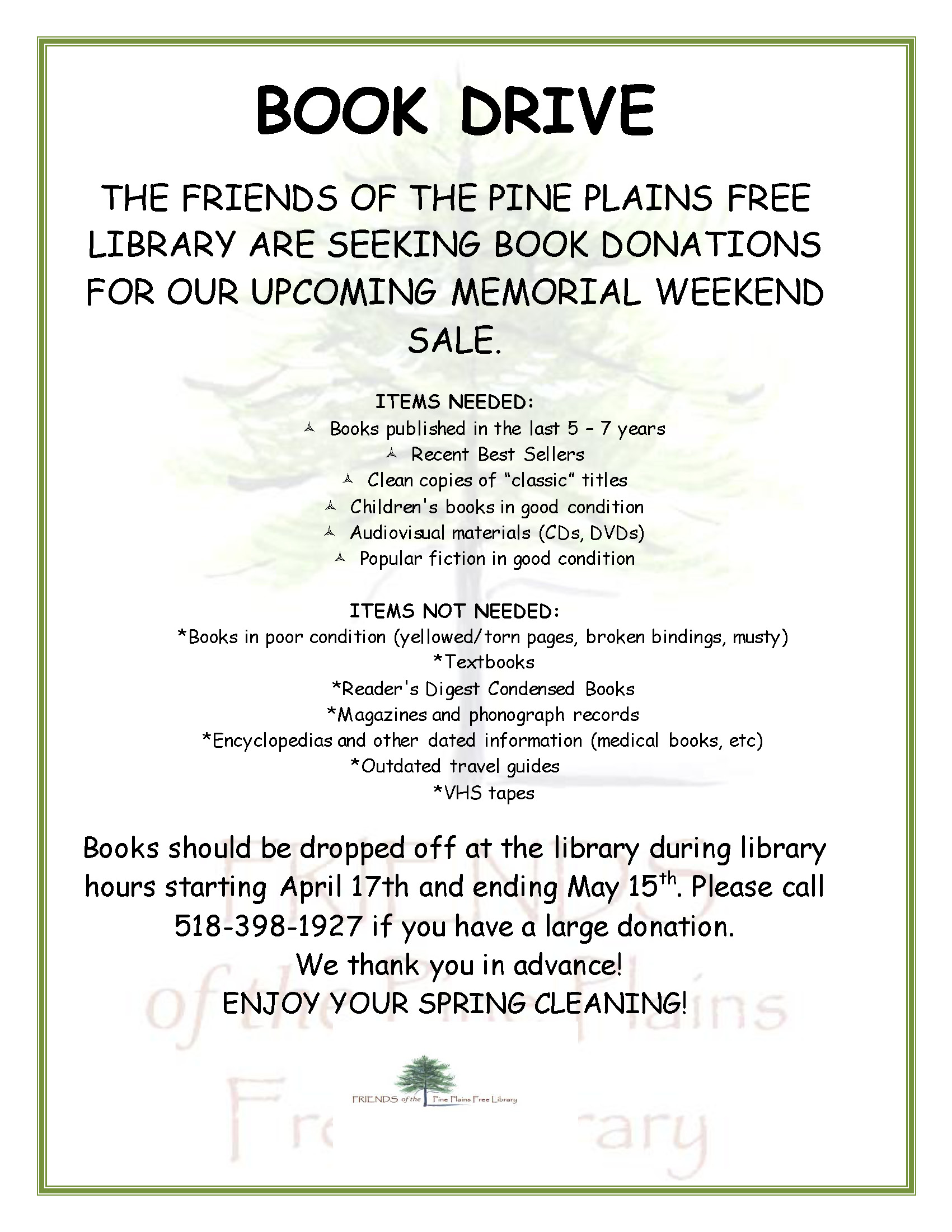 Book Drive 2021 Items Accepted Mar30 Share this: Click to share on Facebook (Opens in new window) Facebook Click to email a link to a friend (Opens in new window) Email Click to print (Opens in new window) Print More Click to share on X (Opens in new window) X Like Loading... Related