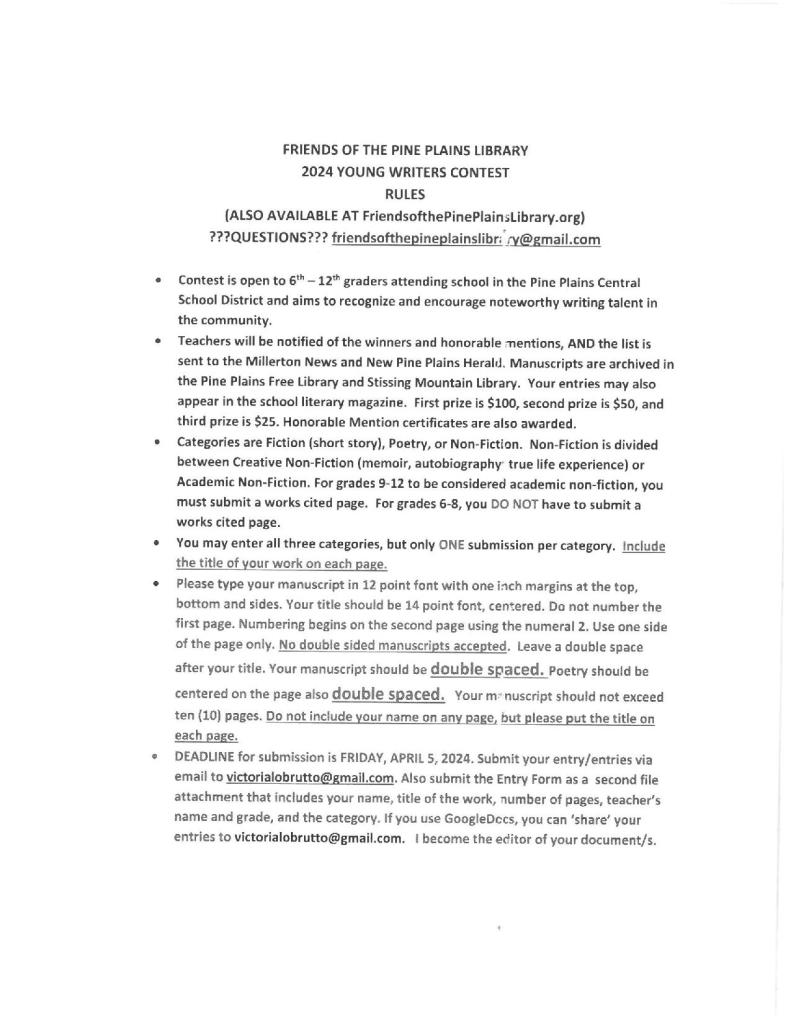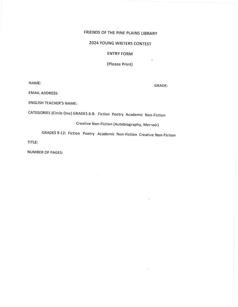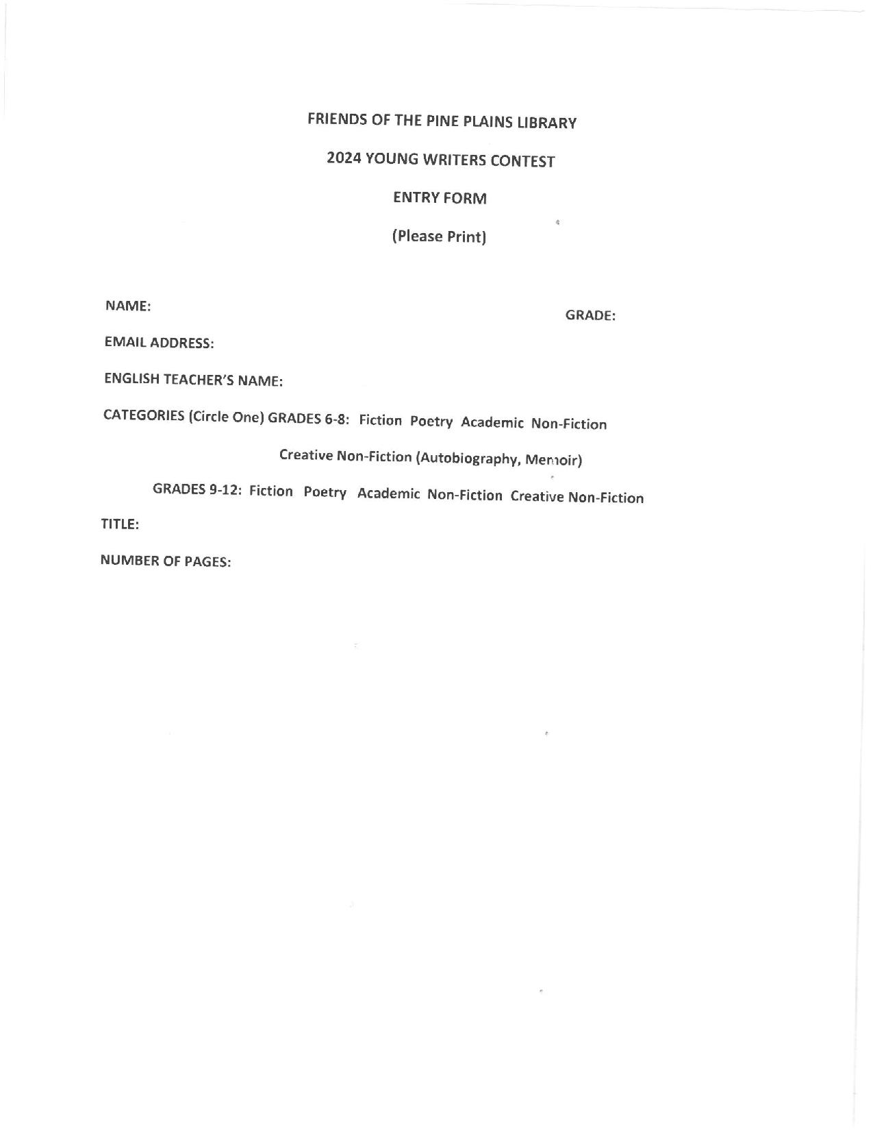 2024 Young Writers Contest – Rules and Entry Form Jan10 Share this: Click to share on Facebook (Opens in new window) Facebook Click to email a link to a friend (Opens in new window) Email Click to print (Opens in new window) Print More Click to share on X (Opens in new window) X Like Loading... Related