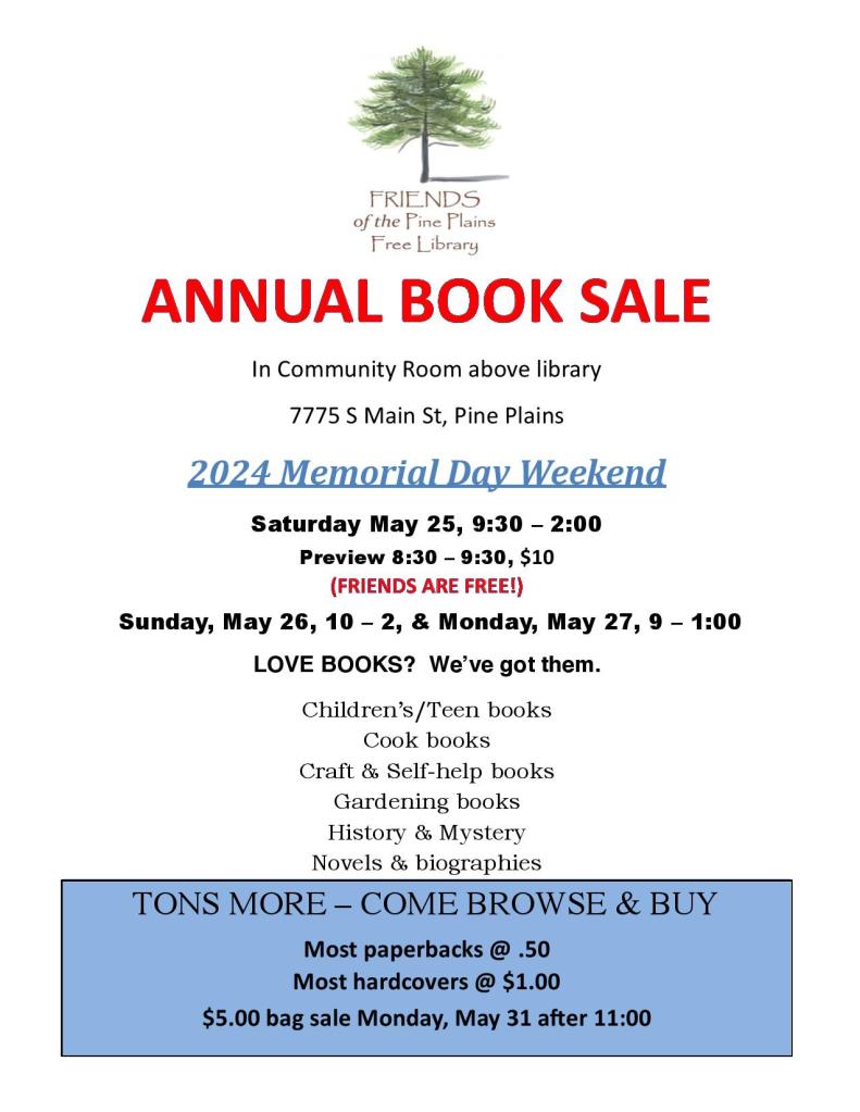 2024 Book Sale May2 Share this: Click to share on Facebook (Opens in new window) Facebook Click to email a link to a friend (Opens in new window) Email Click to print (Opens in new window) Print More Click to share on X (Opens in new window) X Like Loading... Related