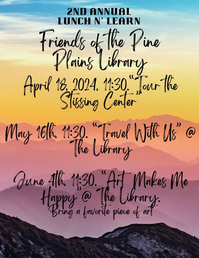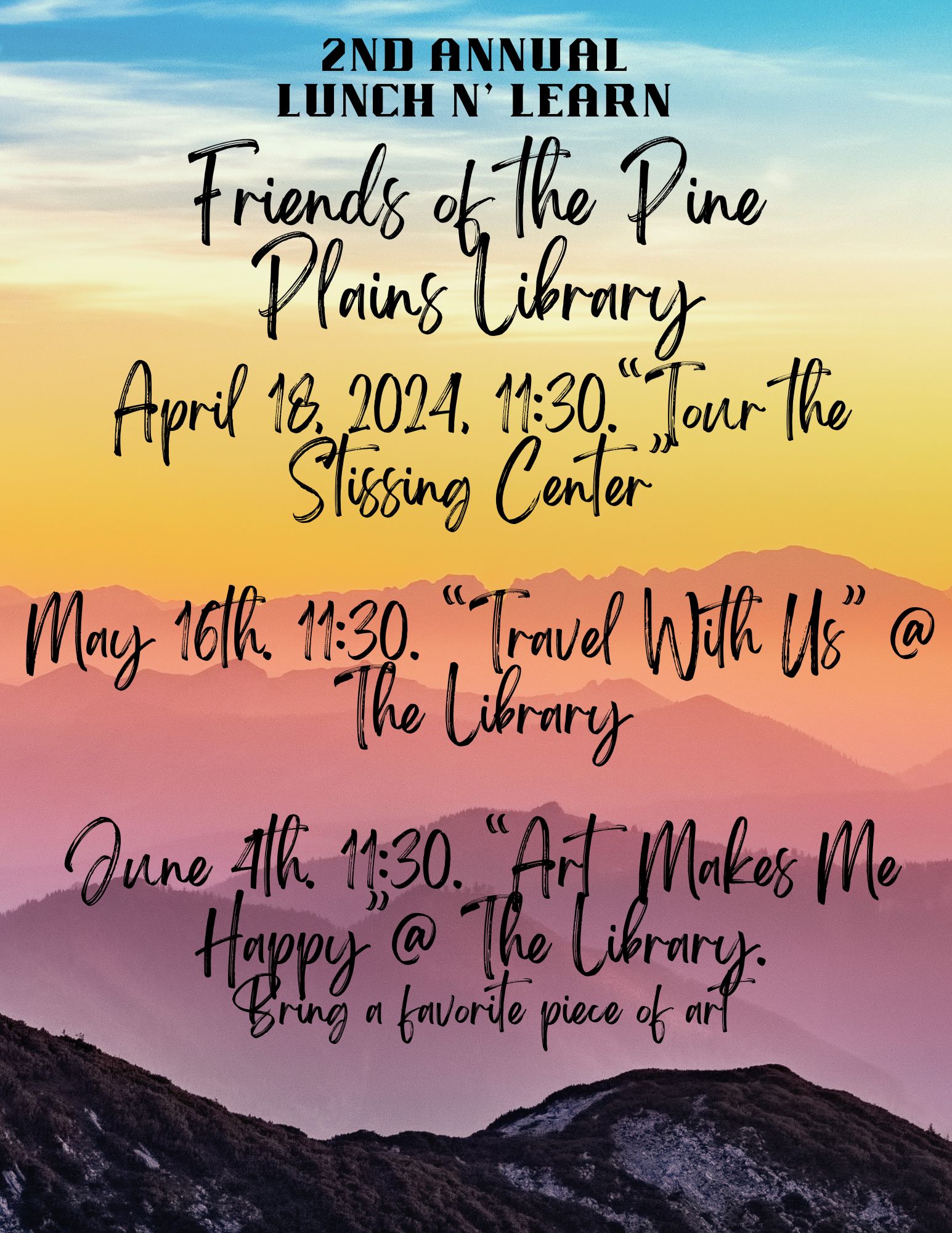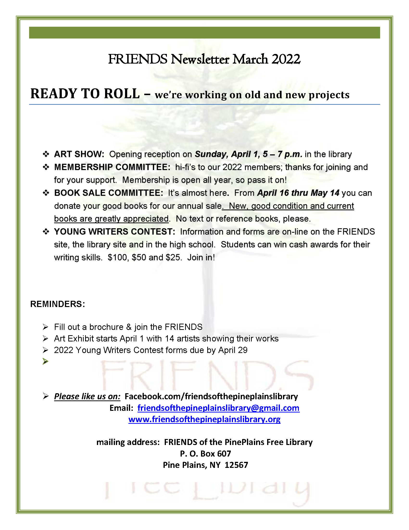 The Friends of the Pine Plains Library Artists Reception is FRIDAY (not Sunday), April 1, 5-7 pm.