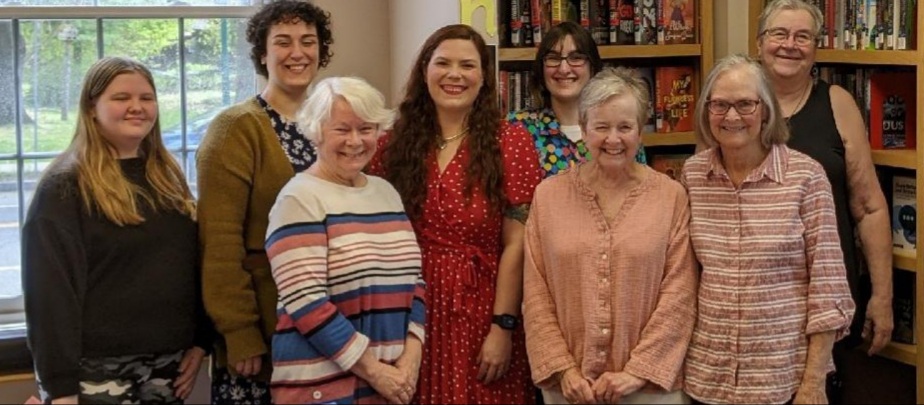 Left to Right: Hannah Johnson, Student Volunteer; Annie Mallozzi, Library Staff; Vicky LoBrutto, Friends of the Pine Plains Library; Alexis Tackett, Library Director; Samantha Moffett, Library Staff; Friends of the Pine Plains Library, Lois Lenehan; Friends of the Pine Plains Library, Jean Osofsky; Mary Bowen, Library Staff.