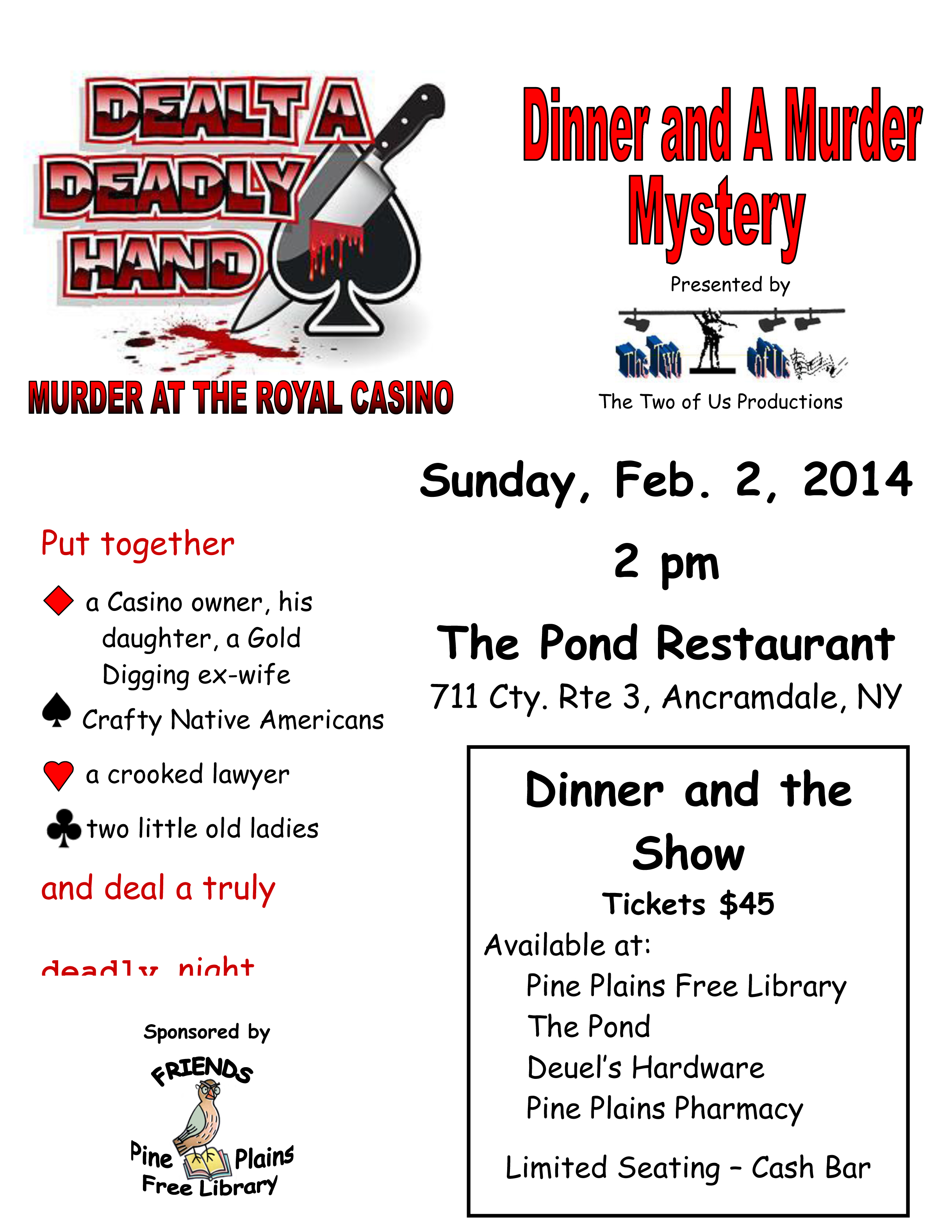 Mystery Dinner Theatre Share this: Click to share on Facebook (Opens in new window) Facebook Click to email a link to a friend (Opens in new window) Email Click to print (Opens in new window) Print More Click to share on X (Opens in new window) X Like Loading... Leave a comment